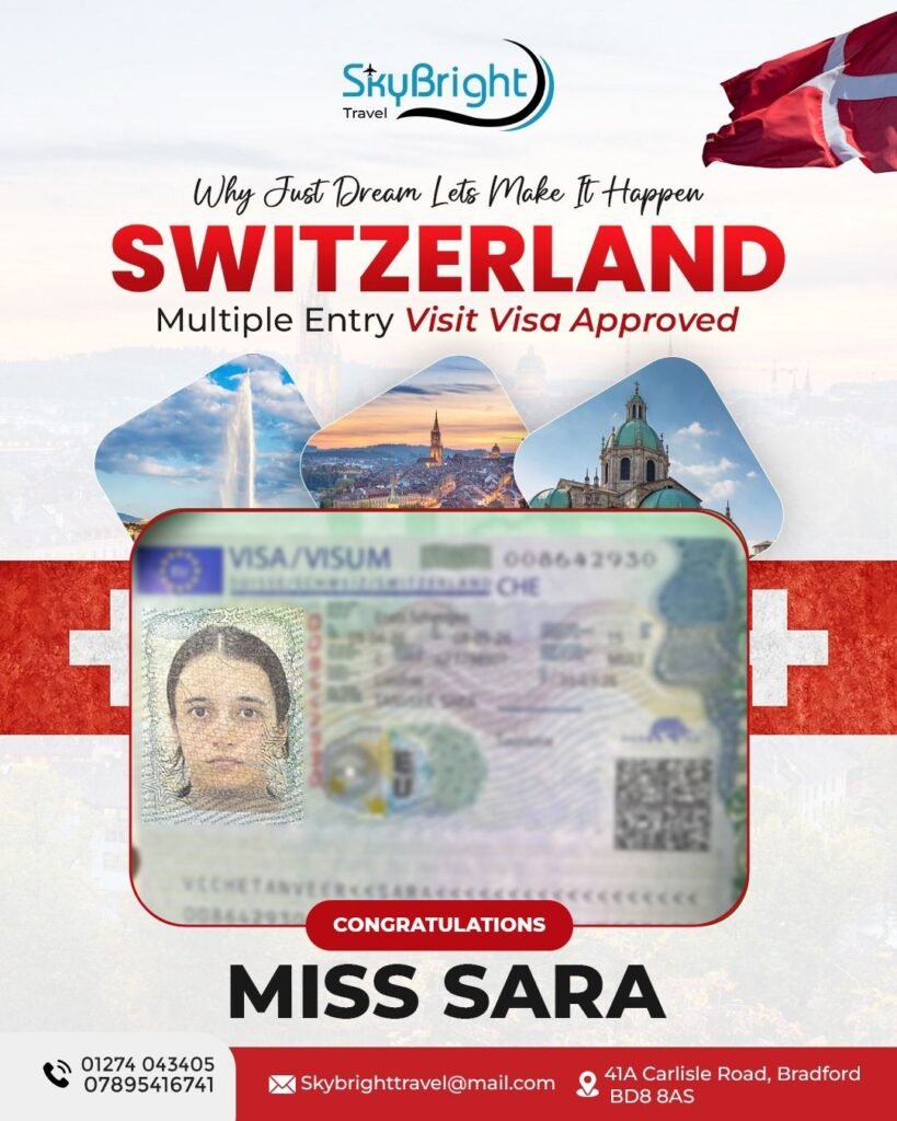 Planning a trip to Europe? Sky Bright Travel makes your Schengen visa process simple, quick, and stress-free. Whether you’re visiting for tourism, business, or family purposes, our team in Bradford, UK provides complete end-to-end support — so you can focus on your travel plans while we handle the paperwork. With our expert visa consultants, you’ll receive professional guidance to ensure your application is accurate, compliant, and ready for approval.